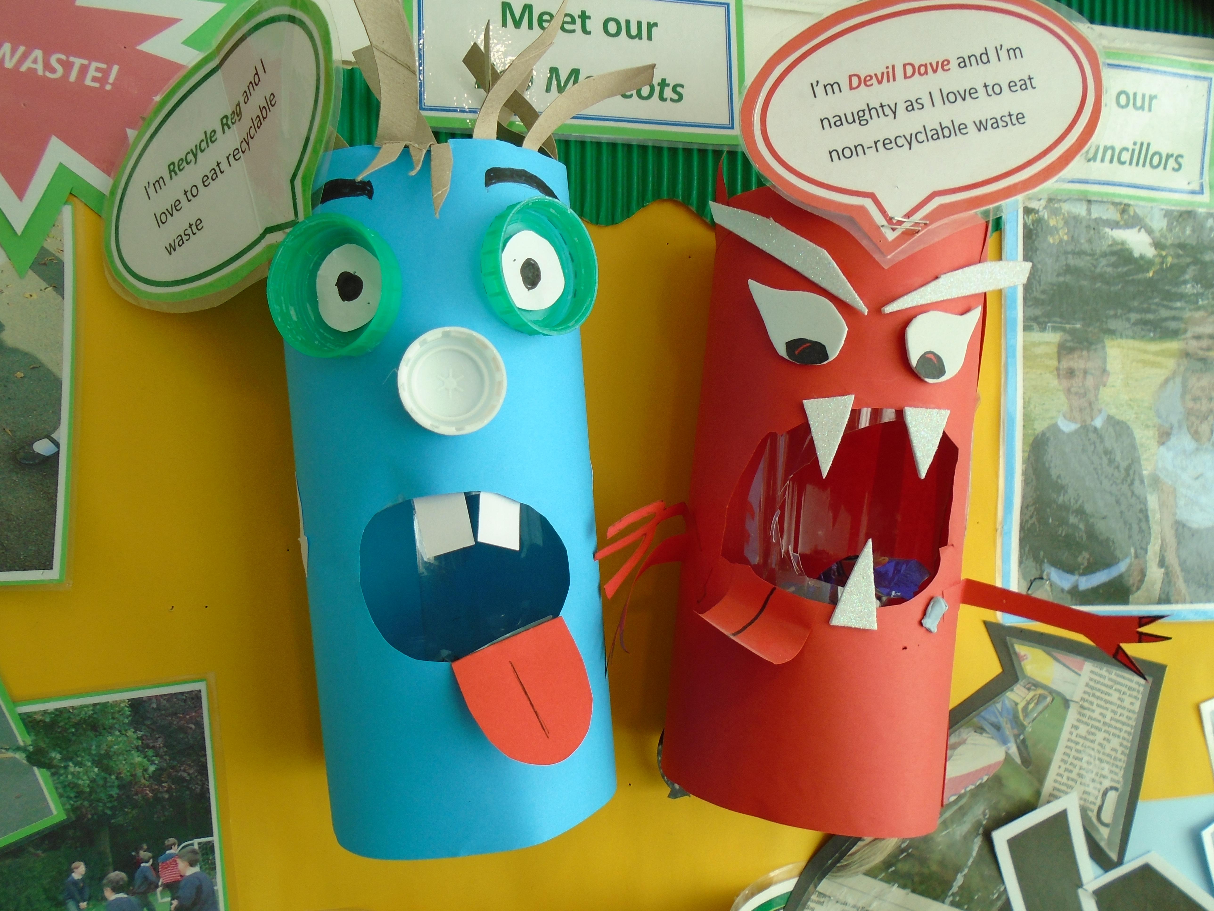 Meet our Eco Council, along with Recycle Reg and Devil Dave, our Eco Mascots. They all work hard to ensure all our children are eco-friendly in the classroom and out on the playground.