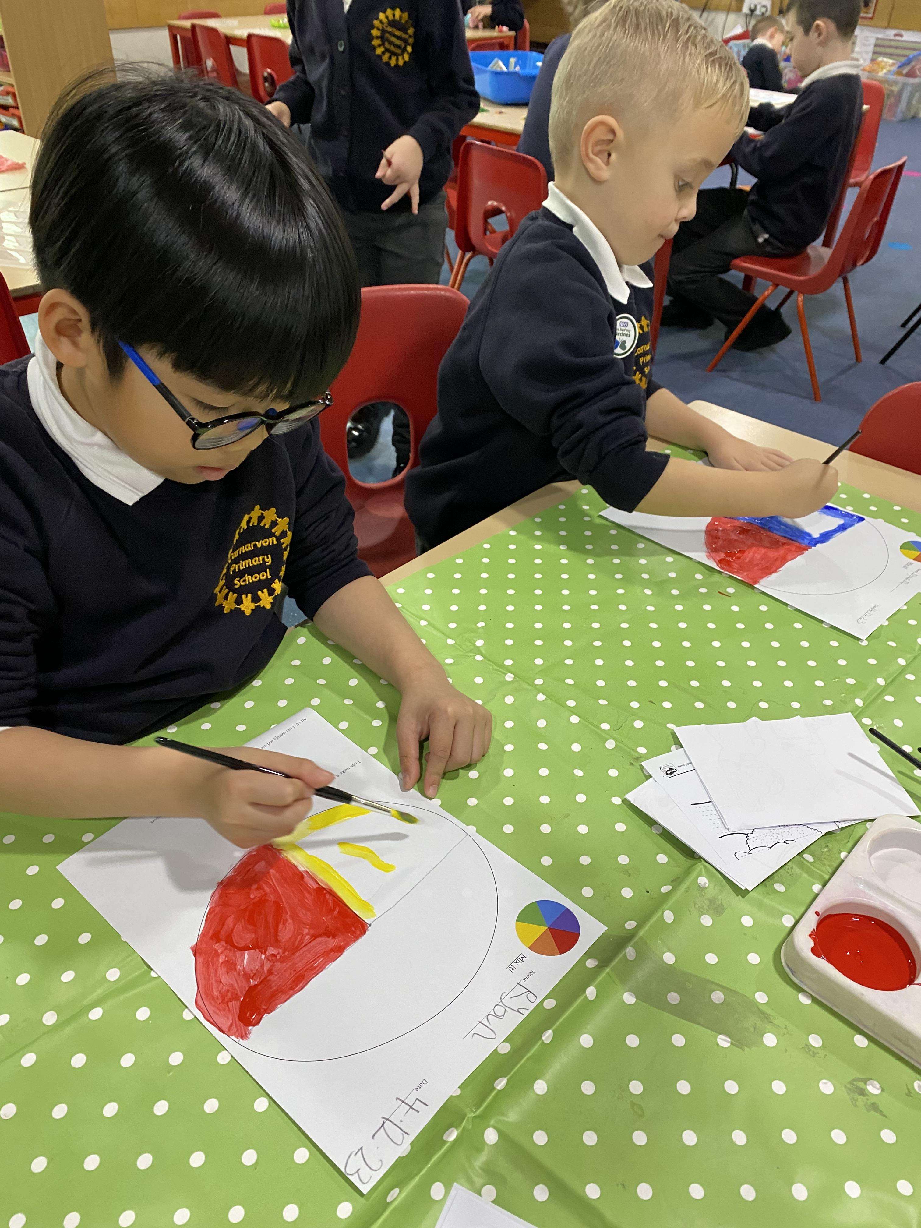 This week in art Year 1 have been learning about primary and enjoyed mixing them to create a secondary colour. We have also learnt more about maps and looking in depth at countries in the United Kingdom. In R.E we listened to the Nativity story and then retold the story ourselves and had lots of fun on Christmas jumper day. Another great week Year 1, well done!