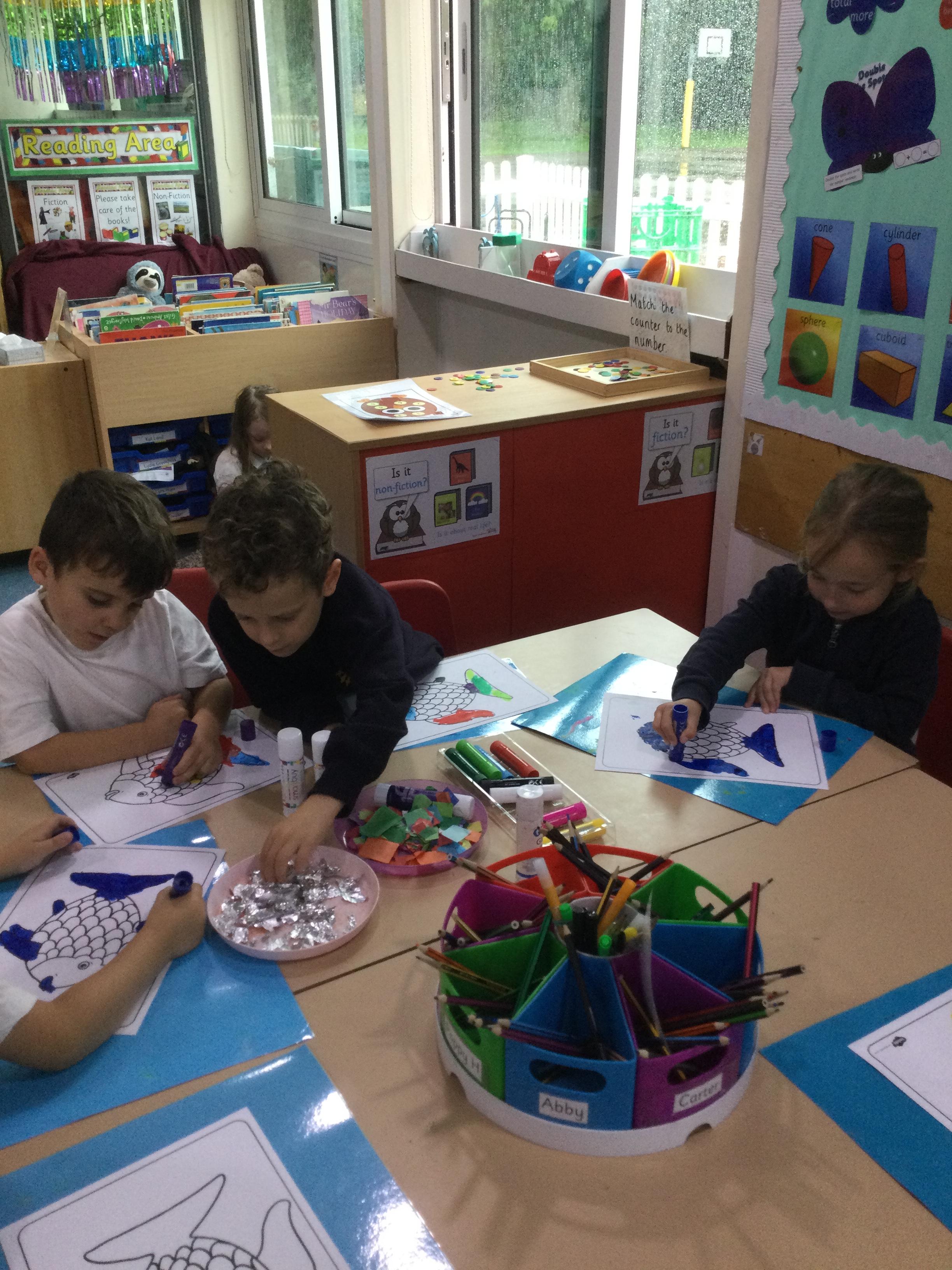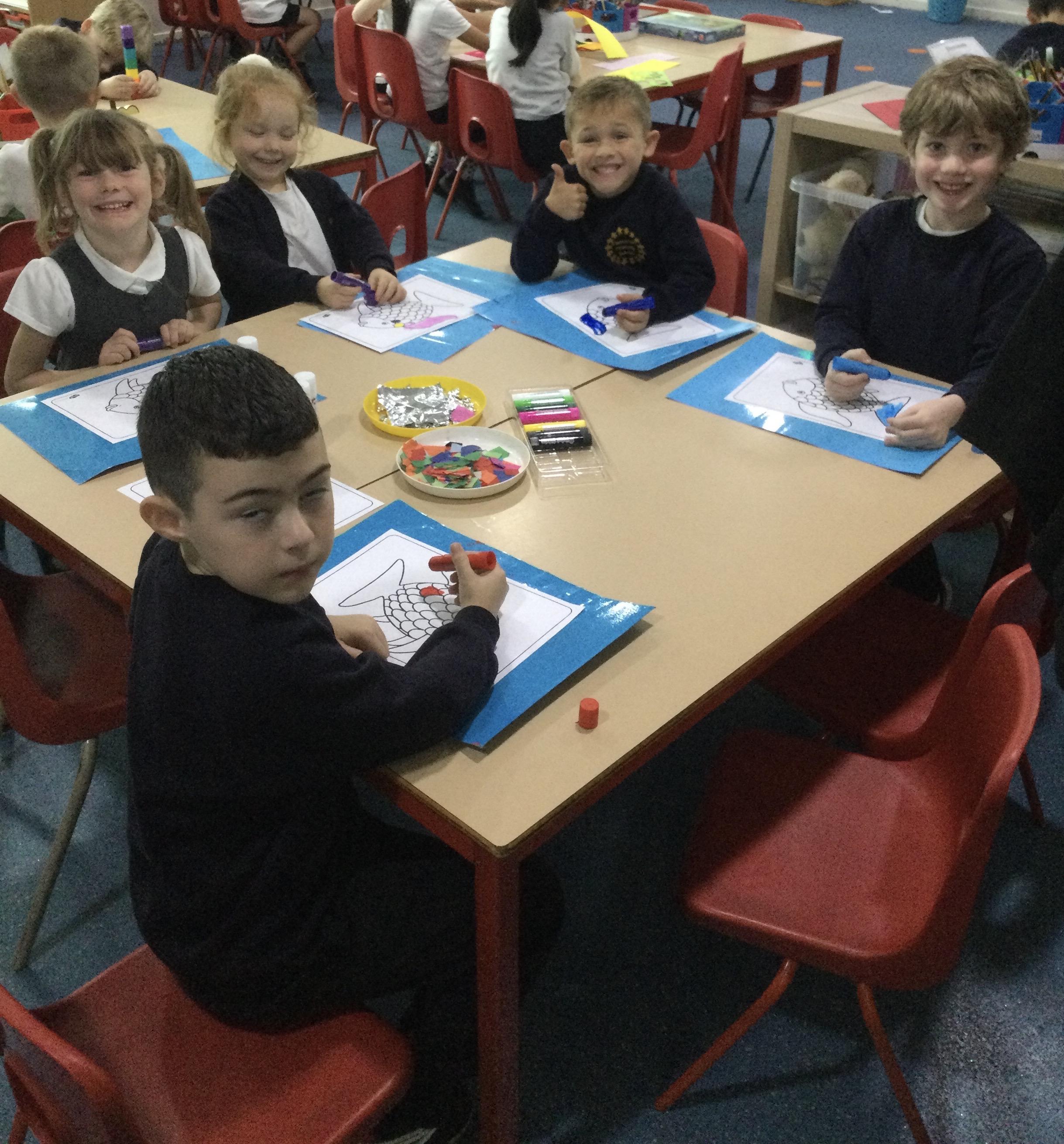 This week has been very exciting in Year 1! We have designed a shelter, thinking about the materials that we could use, we then created our shelters in The Copse following our plans. We managed to avoid the rain too! In RE we listened to the story of Jesus and the 5 loaves and 2 fishes, discussing the importance of sharing with one another. We collaged our own fish in our activity after the story to represent the fish in the bible story.